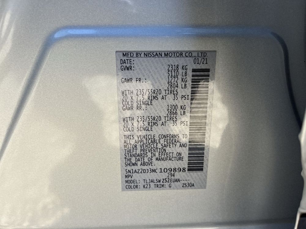 - VIN: 5N1AZ2DJ3MC109898